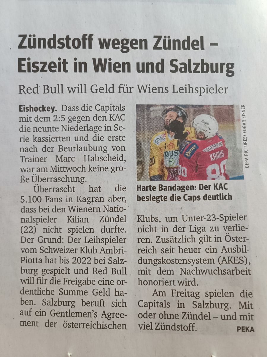 Kann mich hier aber nur an die Kommentare einiger Kollegen anschließen- schade für Zündel.. er ist am Ende des Tages der leidtragende und kann für die Umstände nix! Ich hoffe, dass sich die Causa bald erledigen wird und er entweder die Freigabe erhält, oder sich die Caps anderweitig verstärken können! Für Zündel ist es sicher auch nicht leicht so in der Luft zu hängen 👎🏻