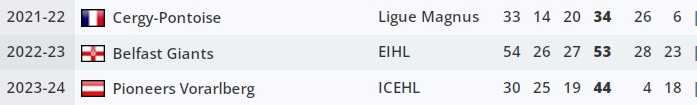 Magwood hat in einer Saison gut performt wo SIEBEN Spieler mit 10 oder mehr Toren die Saison beendet haben. Das Jahr in der DEL2 bei Krefeld kann ich nicht wirklich beurteilen aber ja 52 Punkte aus 50 Spielen klingt gut. Dafür hat er dieses Jahr mit 4 Punkten aus 21 Spielen komplett die Hex am Schläger.