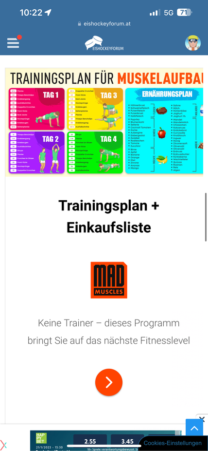komplett außer Form bin ich nicht, hab jetzt kein Übergewicht oder so. Weiß nur um meine Probleme beim letzten Mal wo ich nach einer Pause in so ein Spiel ging und wollte mich deswegn diesmal besser vorbereiten. Zugang zu Eiszeiten hab ich keine (außer es wird kälter) und Fitness Center mag ich nicht wirklich.