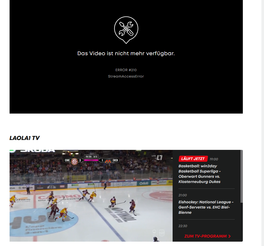 Der Stream hat auch bei mir nicht funtioniert, dachte der ist geblockt, weil sie das Spiel zeitversetzt im Linear Tv zeigen, der auch als Stream anwÀhlbar ist. Dort ist man aber leider live eingestiegen und so waren nur mehr die letzten 25 Minuten zu sehen wo die meisten Tore schon gefallen waren! Weiss nicht wie das lÀuft bei Laola, jedenfalls war das jetzt etwas enttÀuschend :( !