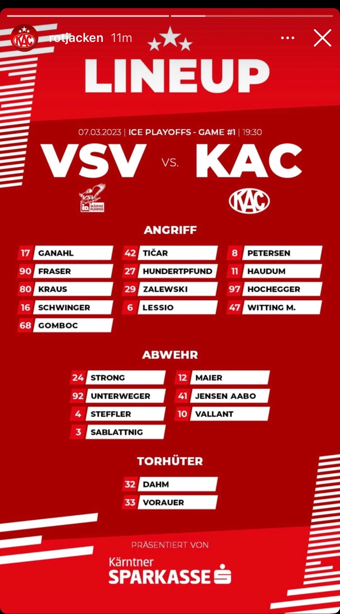 Wenn’s normal läuft, sollten die Schlümpfe in der Serie eigentlich kein Land sehen, - doch leider läuft bei den Roten in dieser Saison nicht viel normal. Von daher sollte das ein Duell absolut auf Augenhöhe werden. Was hier seitens VSV geboten werden wird, ist abzusehen, das große Fragezeichen ist der KAC. Ich bleibe optimistisch.