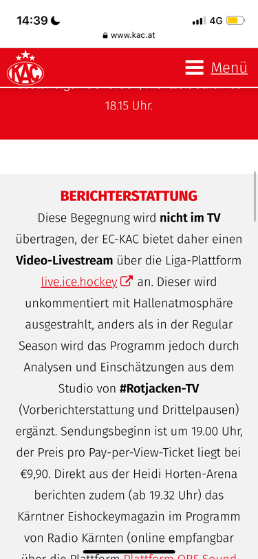 9,90 ohne Kommentar ist echt a Witz. Gott sei Dank hab i den Stream vom Situation Room. In der Beziehung kann man sich übern KAC echt nur ärgern. :banghead: