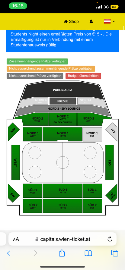 Vorverkauf schaut recht gut aus für heute Abend. Bis auf die üblichen Süd2 Ost und West alle Sektoren schon sehr gut gefüllt!