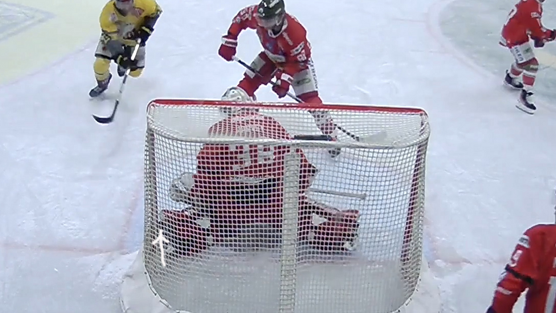 Schau dir das ganze von der Übertorkamera an! Hier kommt der Schläger und da war nichts mit die Scheibe ist vorher durchgerutscht! Weit und breit keine Scheibe zu sehen! Beim untern Bild kann man erahnen das der Puck hinter dem Schlittschuh ins Tor geht!