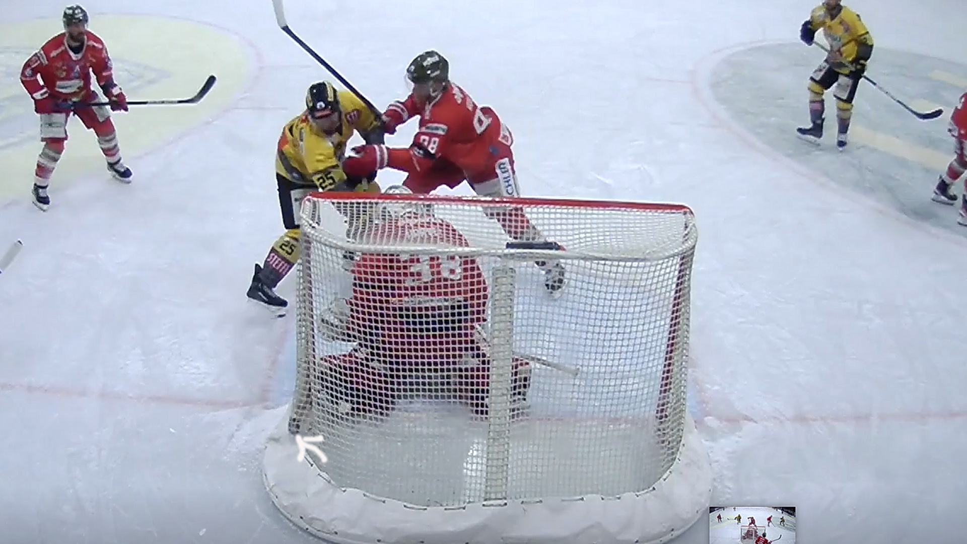 Coldplayer bei bild 1,2 und 3 habe ich die scheibe mit dem pfeil markiert.ich denke da war kein schläger dran.die ist durchgerutscht bevor grégoire nachgestochert hat.