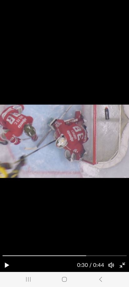 Fix ist das die Scheibe und das ist am Video ganz klar zu sehen auf der Schiene vom Goalie gelegen ist! Kurz bevor der Wiener Spieler mit dem Schläger nachstochert sieht man am Video auch das der Goalie noch denn Fänger auf die am Schoner liegende Scheibe legt! Nach dem Stochern des Wieners geht die Scheibe welche sich zu diesem Zeitpunkt zwischen Schiene und Fanghand befindet ins Tor! Also diese Scheibe kann man durchaus als gesichert ansehen und es handelt sich eben um keine klare Fehlentscheidung!