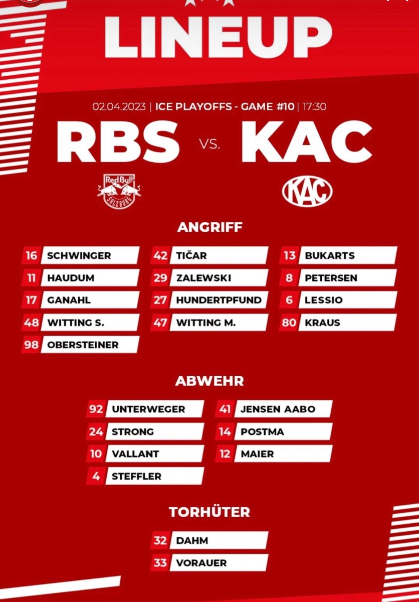 Um Mal zum Spiel zurück zu kommen, Salzburg mit der etablierten Aufstellung. Hätte mich auch gewundert. Auch wenn es sehr gewöhnungsbedürftig ist den Raffl mehr in UZ als im PP zu sehen...