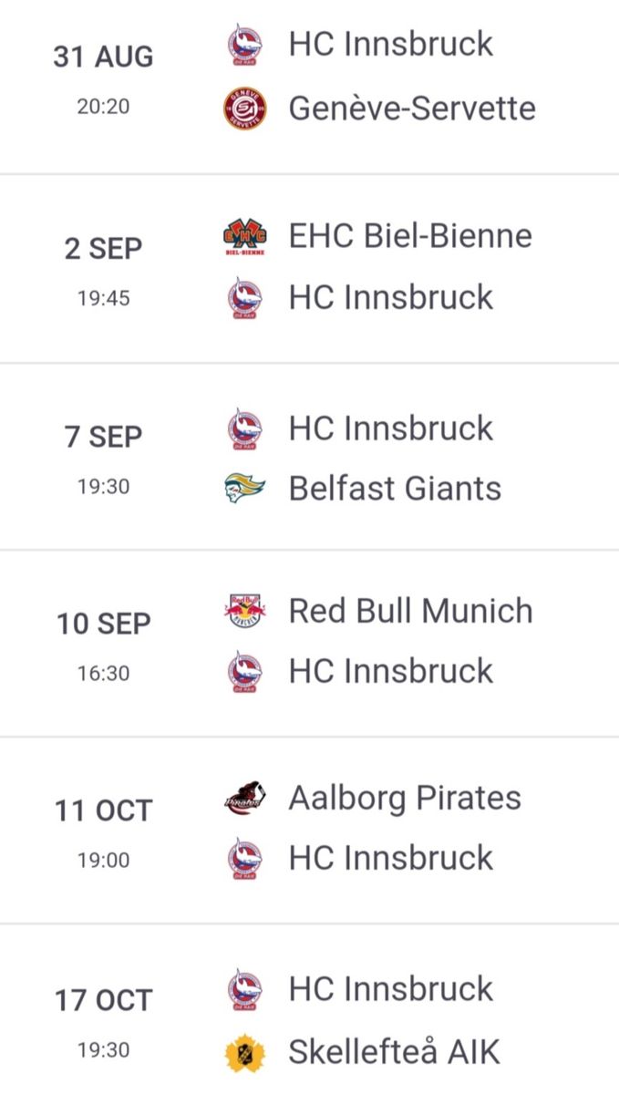 Ein Spiel gegen die icetigers aus Nürnberg 26 08 2000 Uhr und eines gegen Ingolstadt 27 08 1400 Uhr. Die pusterer spielen am Freitag 25 08 und am Sonntag 27 08 nach den Haien