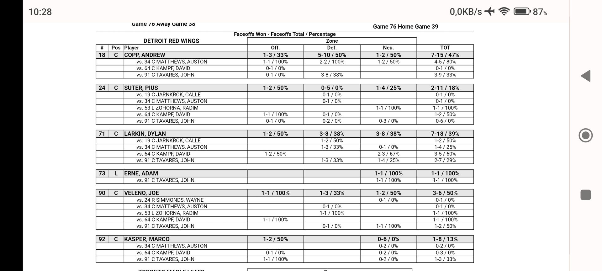 Klar hast mit Tavares und Matthews keine Nasenbohrer als Gegner, trotzdem gibt's da bei den Wings viel zu tun, ausgenommen Copp.