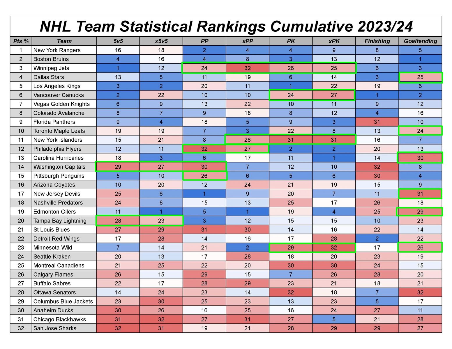Dass die Pengs um Crosby und Karlsson kein anständiges PP auf die Beine bringen ist schon sehr erstaunlich , ansonsten wären sie gut dabei und hätten alle Voraussetzungen für einen gesicherten PO Platz.
