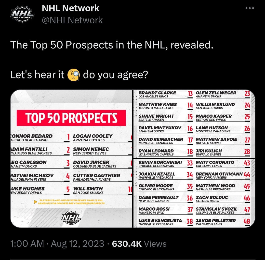 NHL Network reveals top 50 prospects