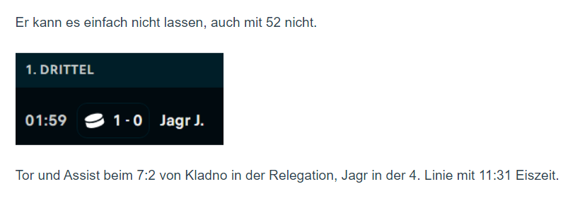 Hat eigentlich wer das Milano Goal off Strome Faceoff gesehen? Schon auch einmal was richtig Geiles!