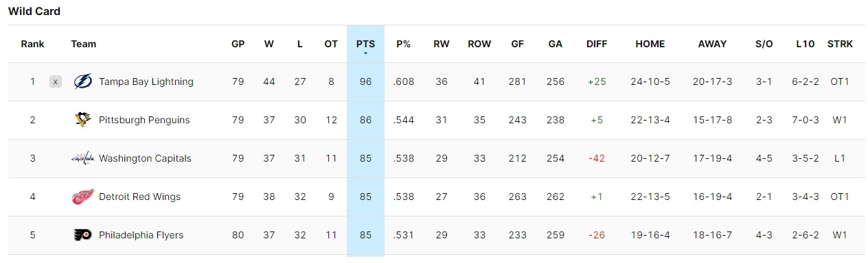 Washington wär glaub ich mit Abstand der Playoffteilnehmer mit der schlechtesten Tordifferenz in der aktuellen Ära.