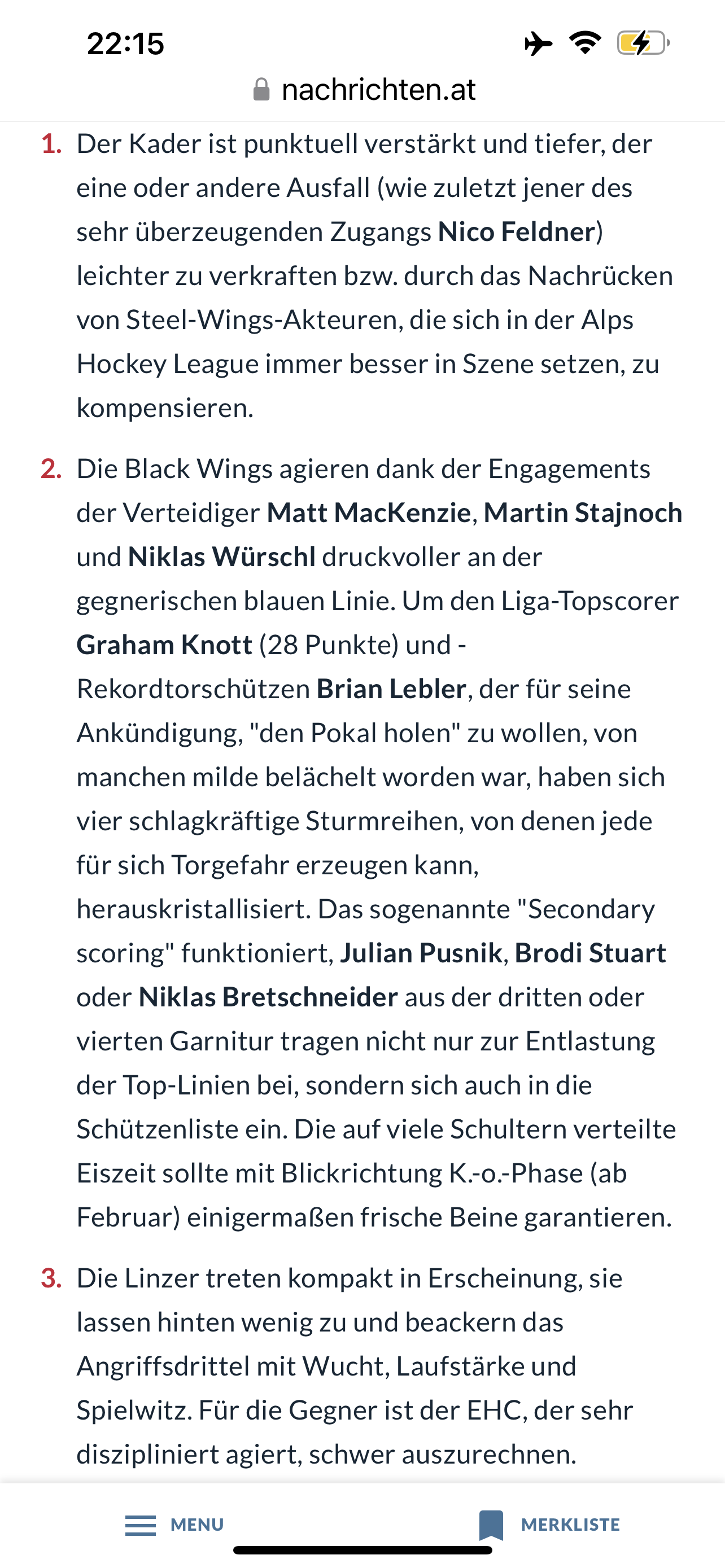 Naja bei den Steel Wings bekommt er halt auch deutlich mehr Eiszeit und kann so Erfahrung sammeln. Bei den Black Wings sind ja trotzdem nicht all zuviele Minuten.