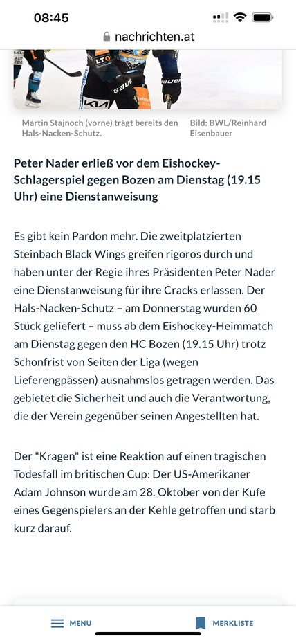 Scheinbar wurde einer unserer Spieler am Sonntag von einem Schlittschuh am Hals leicht "angeritzt".