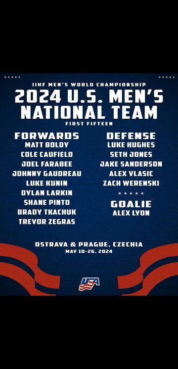 Mit Caufield, Larkin, Tkachuk, Boldy, Hughes, Werenski, Jones, Sanderson hast zumindest einmal 8 Spieler die für die USA sicher auch für Olympia in 2 Jahren in Frage kommen. Vor allem Denfensiv ist das schon ganz gut was die USA da aufbietet. Auch wenn es für Hughes noch etwas zu früh ist.