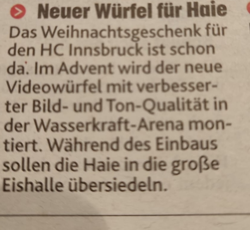 ob dies ein Weihnachtsgeschenk für den HCI Ist bezweifle ich aufs erste.
