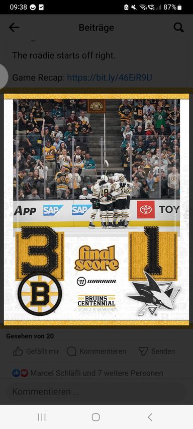 Trotzdem drei Spiele drei Siege! Super Start :prost: aber jetzt gegen die Kings wird man sehen wo die Bruins wirklich stehen 8)