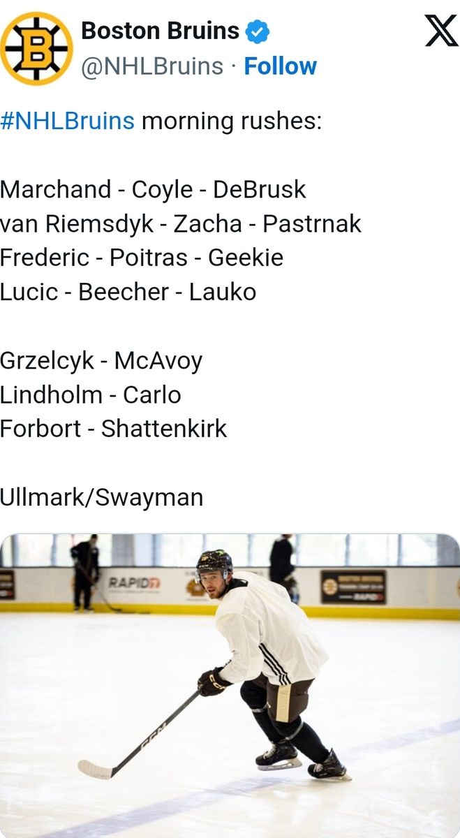Also wenn Pastrnak Marchand hoffentlich gesund bleiben Zacha seine Leistung bringt und die anderen sich noch etwas Steigern DeBrusk Coyle....dann ist das Playoff ein Muss!