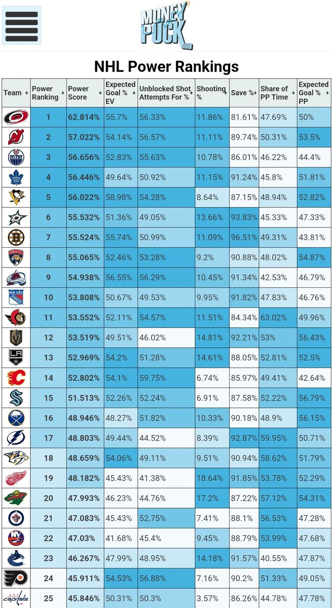 Interessanterweise bei Moneypuck dennoch auf Platz 1 im Power Ranking 8|