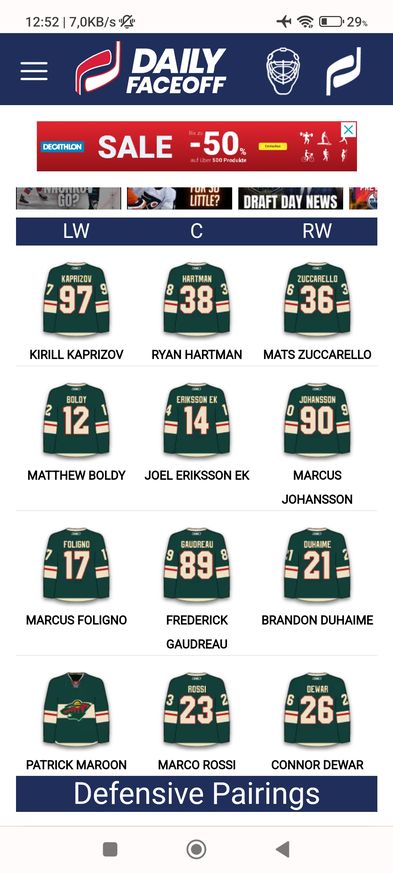 Wird nur schwer weil Ek in der Ersten mit Zuccarello und Kaprizov nicht funktioniert und der somit die 2te Centern wird.