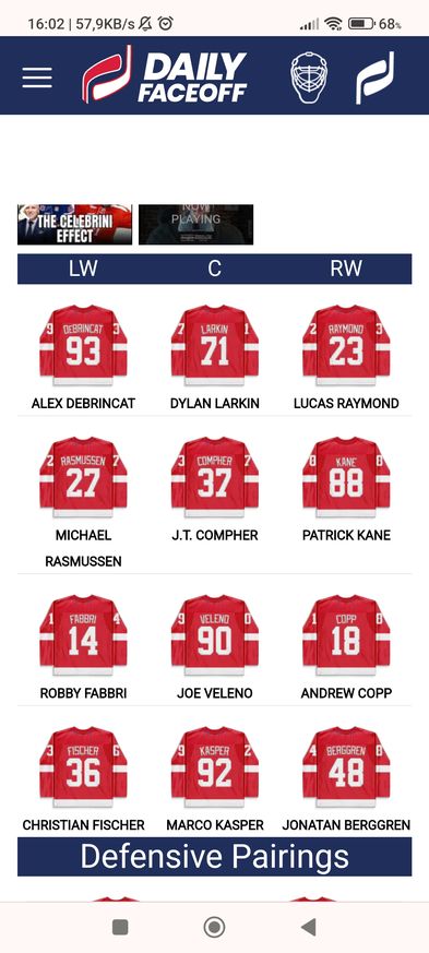 Daily face off sieht Kasper derzeit bei Detroit als Center in der 4. Reihe