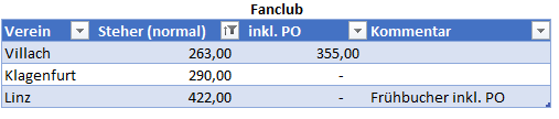Danke, hab vergesse die Fanclubs zu vergleichen (also falls jemand der anderen Vereine die Preise weiß, her damit).