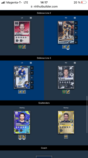 das ist aktuell mein Team, war halt mit den FHs sehr sehr glücklich heuer, Lauzon spiel ich beispielsweise statt TOTS Hughes weils nach Price der zweitbeste Verteidiger ist den ich heuer gespielt habe2, Roloson ist der beste Goalie den ich seit Jahren hatte und das obwohl er nicht den normalen NHL typischen idealen entspricht (größe,...)