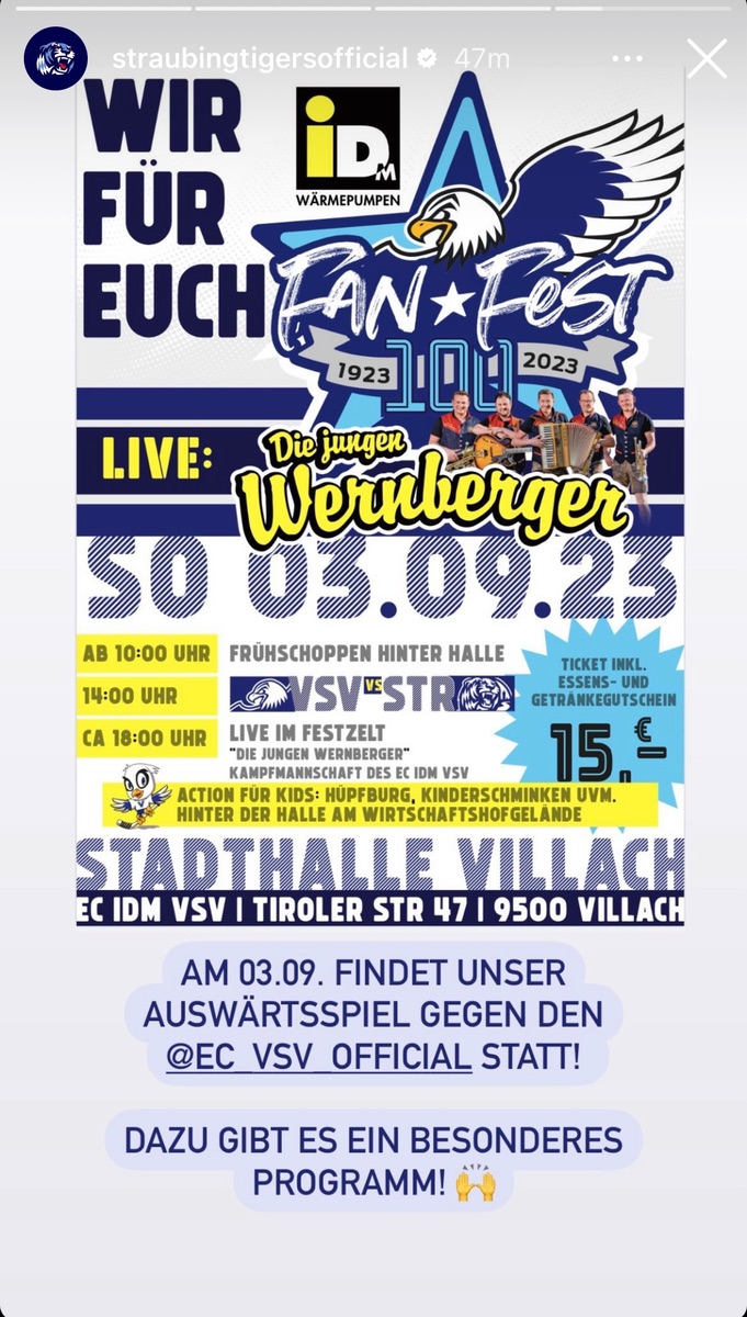 Während wir noch ein Spiel gegen Fehervar bestreiten, spielen die Straubinger in den nächsten Tagen noch zwei Partien bei den Südtirol Classics (gegen Bozen und Slovan oder Fribourg) und am 01.09 gegen die Vienna Capitals...soviel nur für diejenigen, die jammern wenn "zu viel" Vorbereitung gespielt wird und Diese ja nicht wichtig sei. Straubing ist da längst im Turniermodus. Nach dem Spiel in Villach, trifft Straubing in Linz auf die Black Wings.
