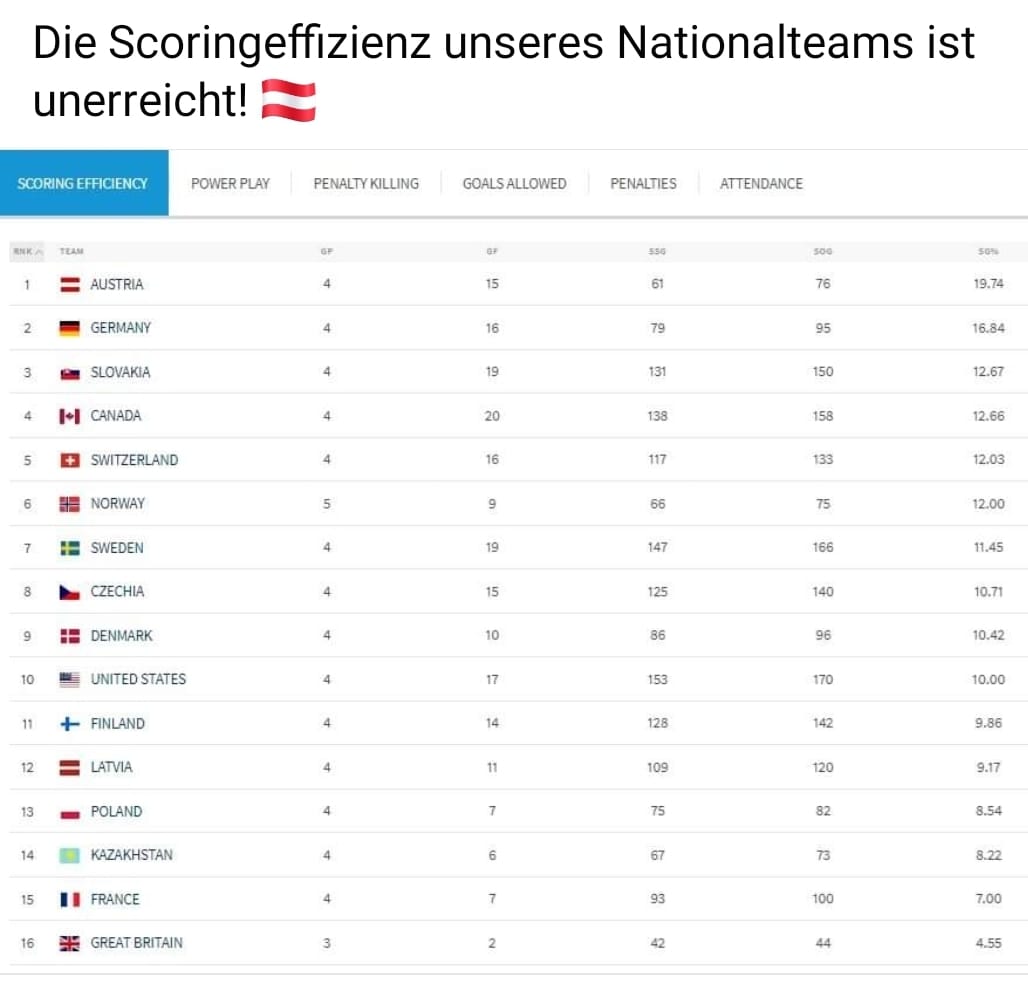 Nur Schweiz und Kanada haben mehr Tore erzielt als Österreich im bisherigen Tunierverlauf 😨