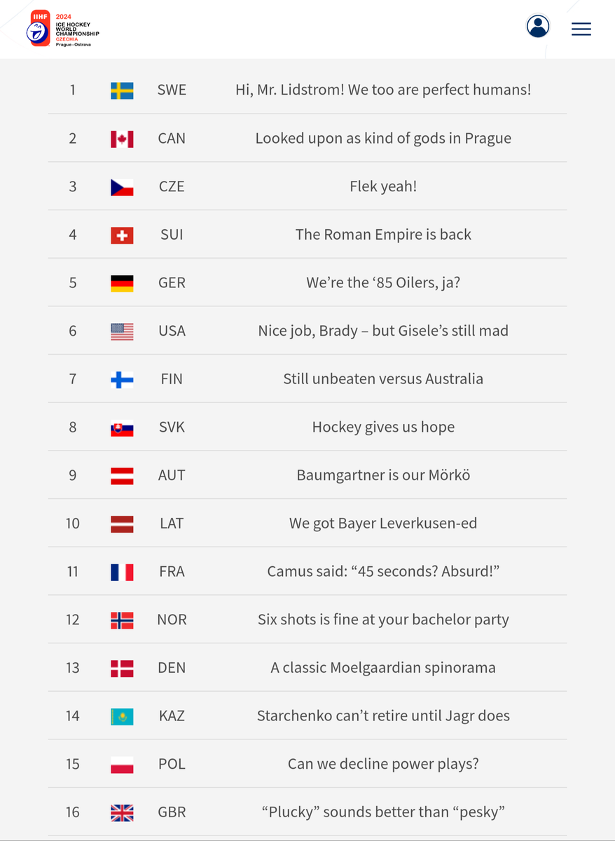 Du kannst es mitn iihf YouTube Stream probieren der ist wie es scheint nur in Ö geogeblockt sprich vpn an und es sollt gehen. Bin gerade in IT und da läuft der Stream tadellos
