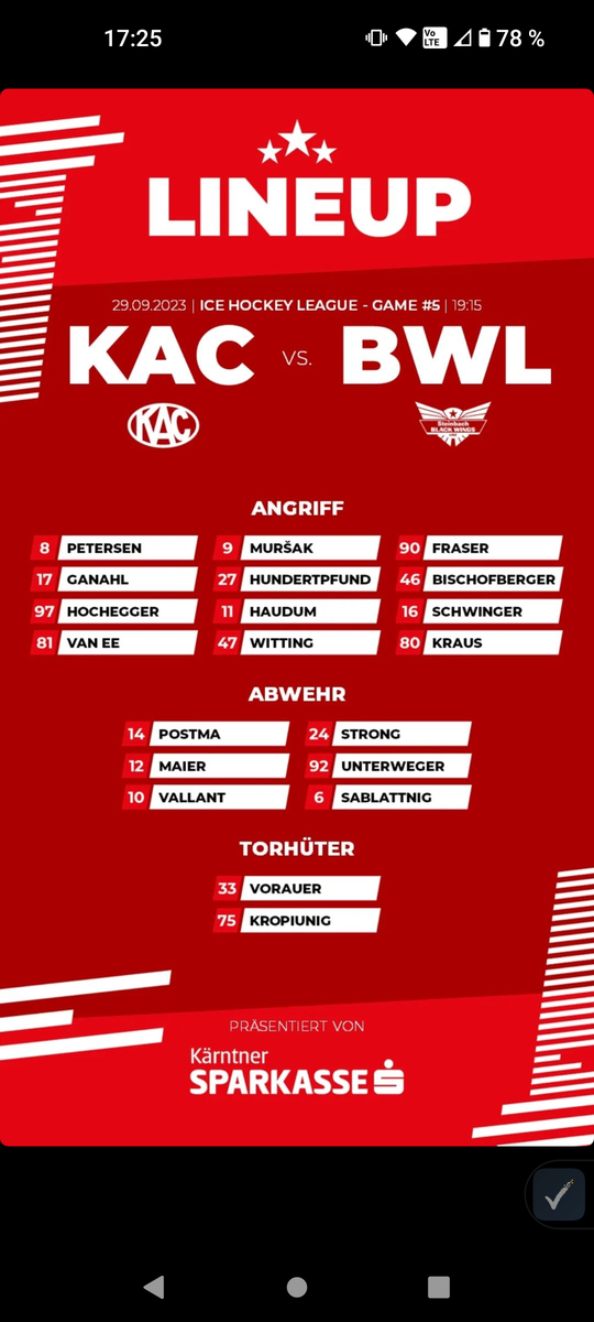 Spielinfos #KACBWL – EC-KAC - Klagenfurt Eishockey