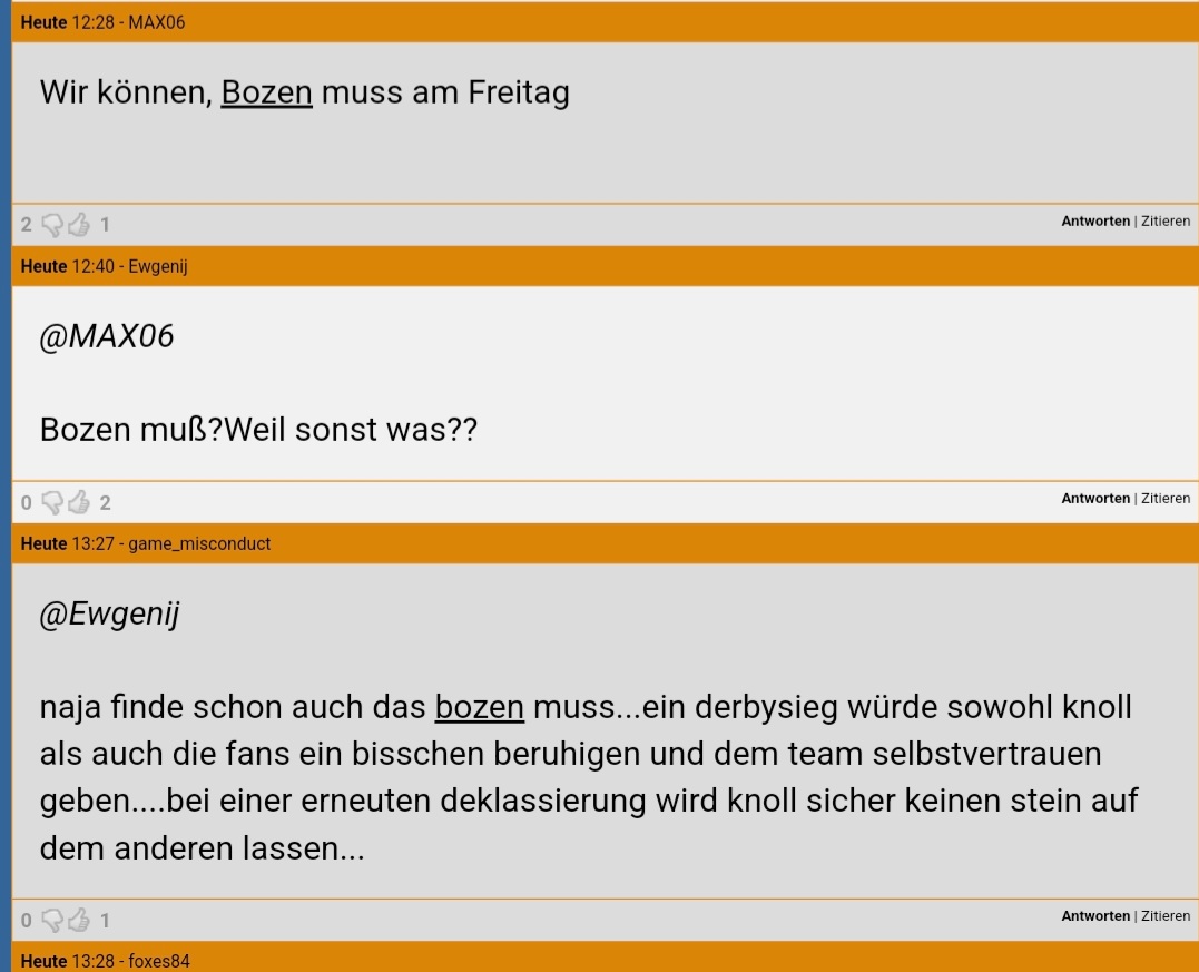 Ach Game.... du schreibst doch selber auf Sonice dass Bozen gewinnen MUSS.