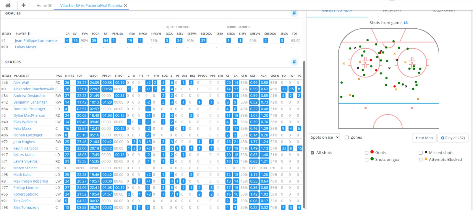 Die erste Linie gestern wieder voll da: Hancock wieder 1G 1A +3, Hughes 3A +3, Sabolic 1G+3.