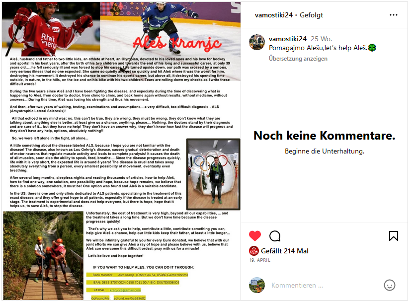 Spendenaufruf von Ales Kranjc - Unterstützt von den Caps