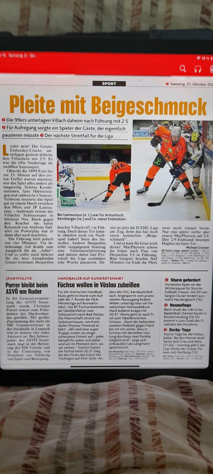 Bitter für Graz da wäre mehr drin gewesen. Uns reicht Gott sei Dank ein gutes Drittel und ein unglaublich guter Lamoureux.