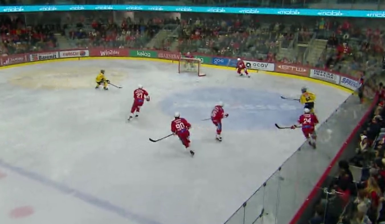 Anstatt im PP den besser postierten Mann mit einem Pass zu suchen, drückt er 2 Mal von 6 Metern zentral ab und schießt dem Goalie in den Bauch.