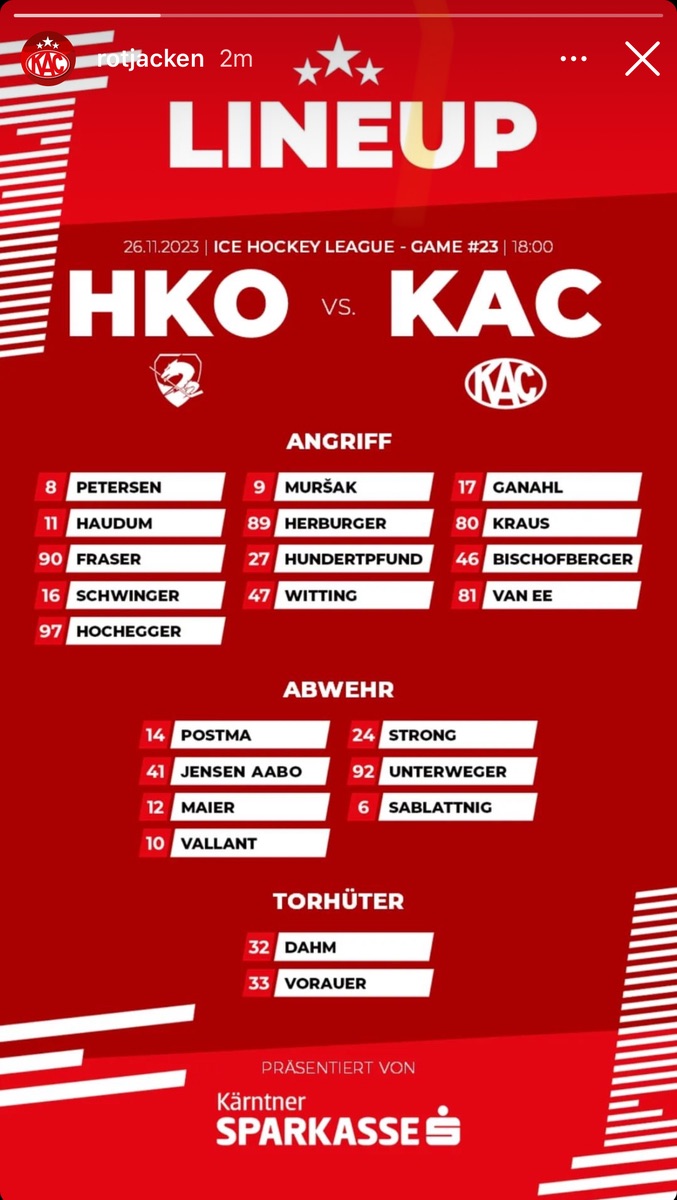 Vl soll Kraus die notwendige Energie in den Ecken bringen. Das würde zu Haudum/Herburger passen. Hochegger ist direkt vorm Tor gefährlicher, Kraus vl noch mehr der Kämpfer. Ähnliche Konstellation wie in Linie 1.