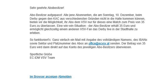 Naja, das habe ich schon vor mindestens zwei Jahren das erste Mal bei höchster Stelle angebracht und dabei darauf verwiesen, dass es sowas beim KAC schon des längeren, für jedes Spiel gibt.