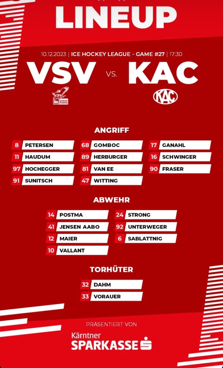 Heute kann der VSV nur gewinnen, wenn man dem KAC unangenehm wird, man muss dem KAC einfach weh tun. Hits, versteckte kleine Fouls, wie in alten Zeiten. Der KAC muss sich jede Sekunde unwohl fühlen. Aber bis jetzt hätte ich nicht gesehen, dass unsere Mannschaft das kann.
