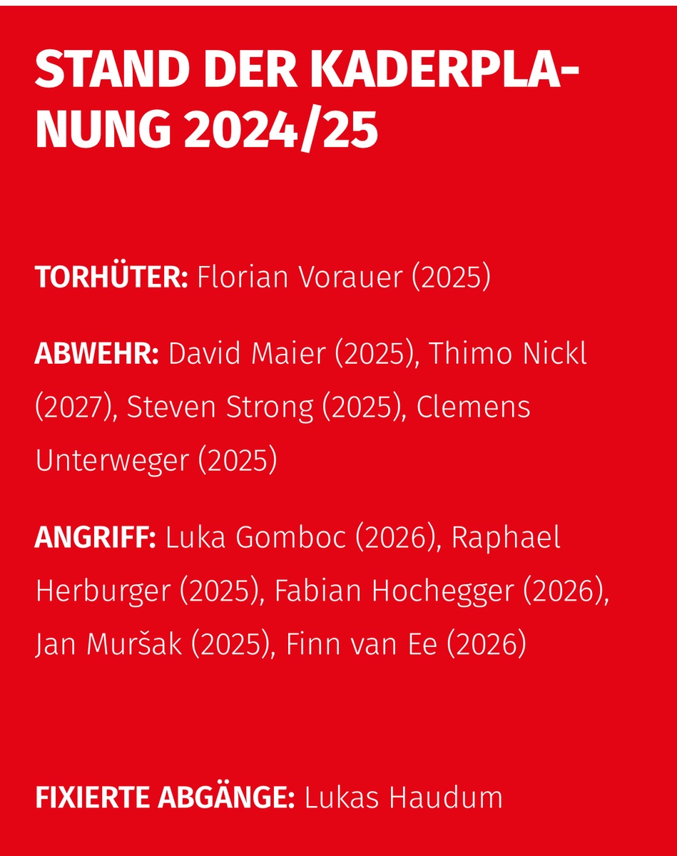 Matikainen war heuer auch noch im Budget. od.? Haudum, Ganahl, Postma evt. Petersen ist ja genug Geld vorhanden. UND noch 10% weniger gehalt für alle gekürzt.