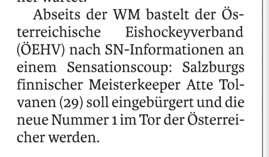 Laut Salzburger NM soll Tolvanen eingebürgert werden