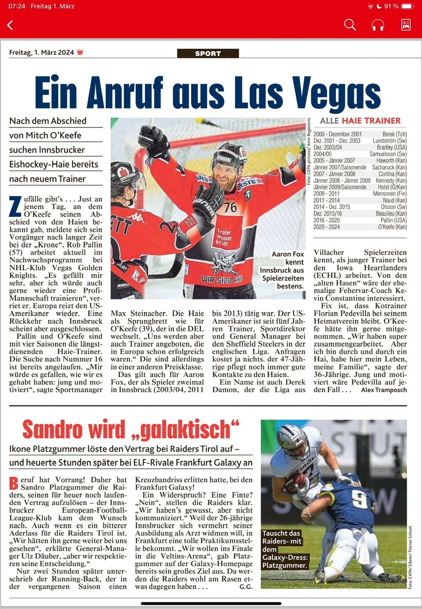 Transfergeflüster HC TWK Innsbruck `die Haie´ 2024/25