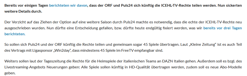 Meine Prognose: Puls24 übeträgt zu 95 % den KAC, der ORF zu 99 % die Capitals.