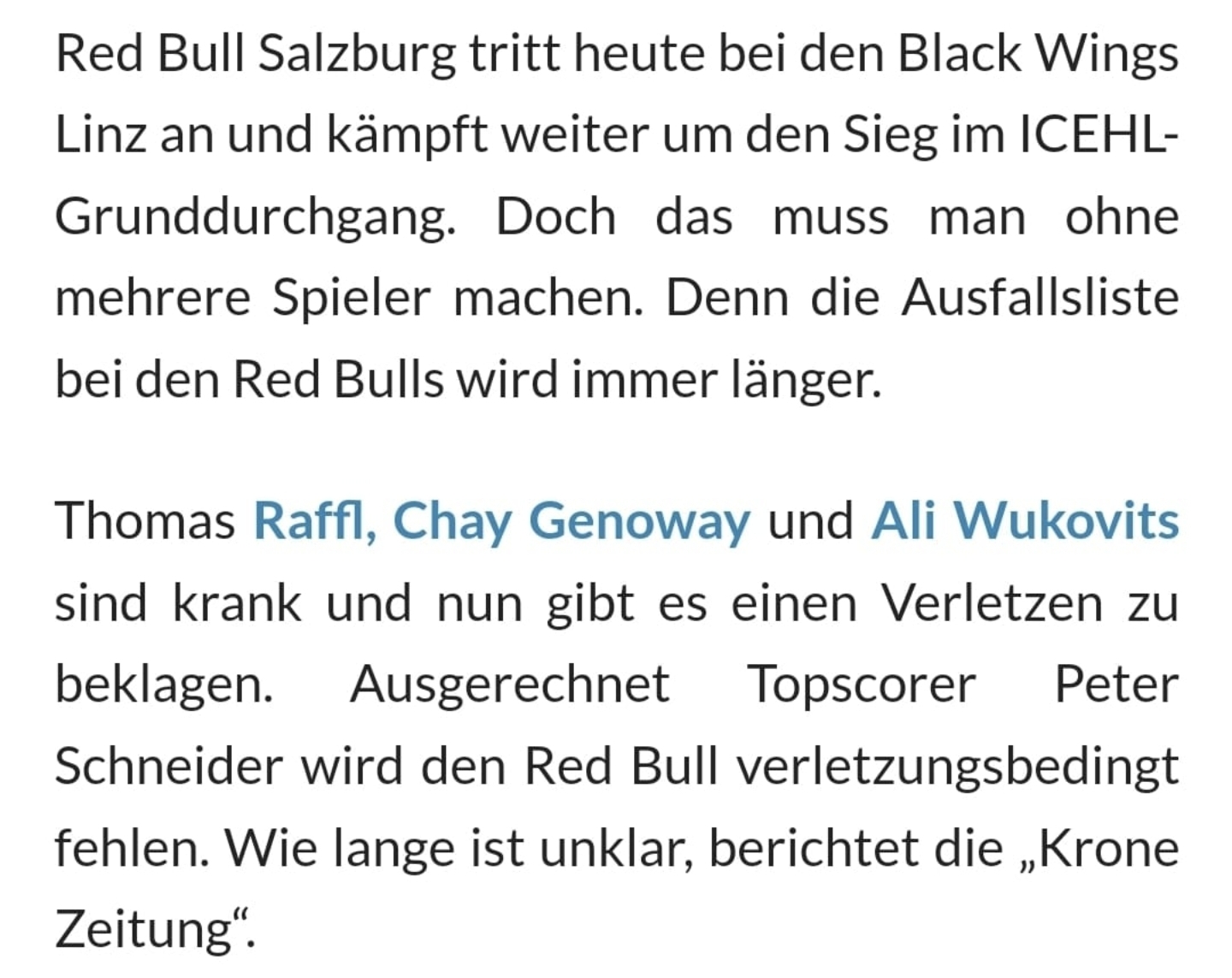 - Mit Raffl, Schneider & Genoway fehlen ganz wichtige Torschützen