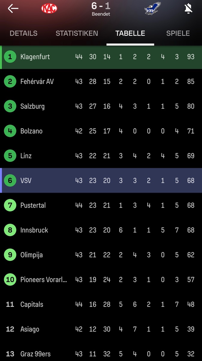 Hat mir gefallen, was der KAC gezeigt hat. Gratulation. Wenn die Form gehalten wird, und der Kader fit bleibt, wird es keiner so leicht schaffen den KAC 4x zu schlagen.