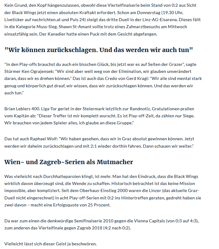 Da kann man den Caps nur gratulieren. Aber deswegen wird in Linz die Welt auch nicht untergehen (auch wenn Ich Perthaler sehr schätze)