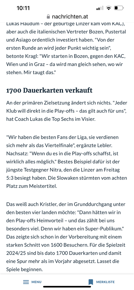 Naja die Ambitionen bezüglich der Zuschauer ist eh gut, nur sollte es nicht von Anfang an Richtung PO Quali laufen, werden einige schnell wieder daheim bleiben.