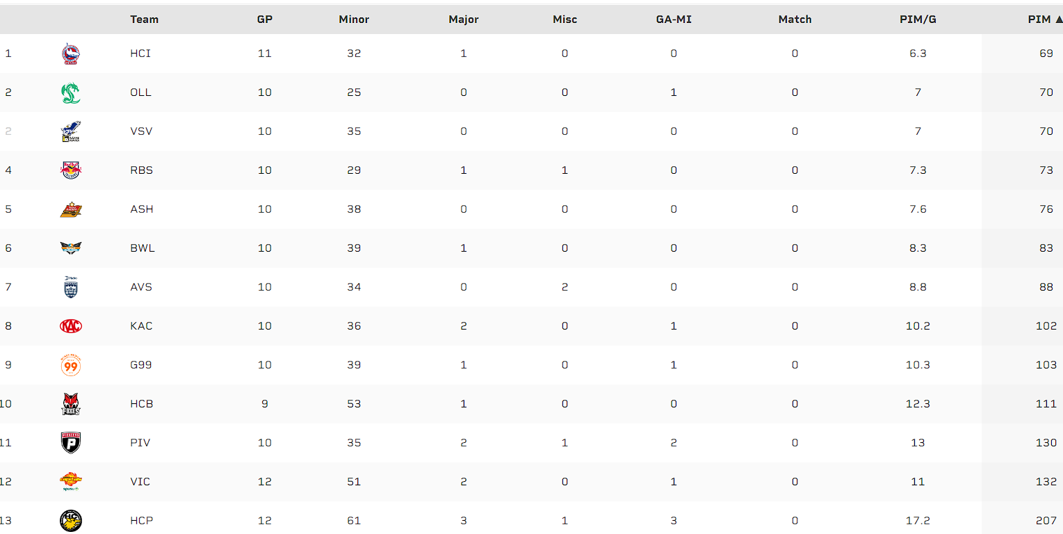 Man hatte gesamt 39 Minor und 1 Major Strafe was gesamt 8,3 Minuten unterzahl pro Spiel ergibt.