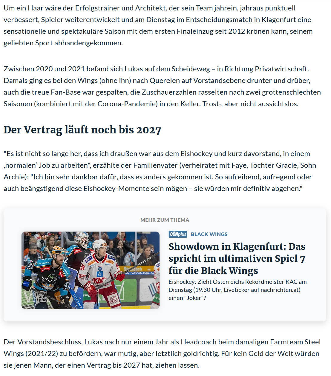 Ein charismatischerTrainer kann einen großen Einfluss auf die Entwicklung von Spielern und die Teamdynamik haben. Es ist großartig, wennjemand, der selbst Spieler war, die Fähigkeit hat, sein Wissen und seine Leidenschaft weiterzugeben. Solche Trainer können nicht nur die sportlichen Fähigkeiten fördern, sondern auch das Teamgefühl stärken und die Motivation der Spieler steigern.Was für eine Bereicherung im Österreichischen Eishockey :thumbup::thumbup::thumbup: